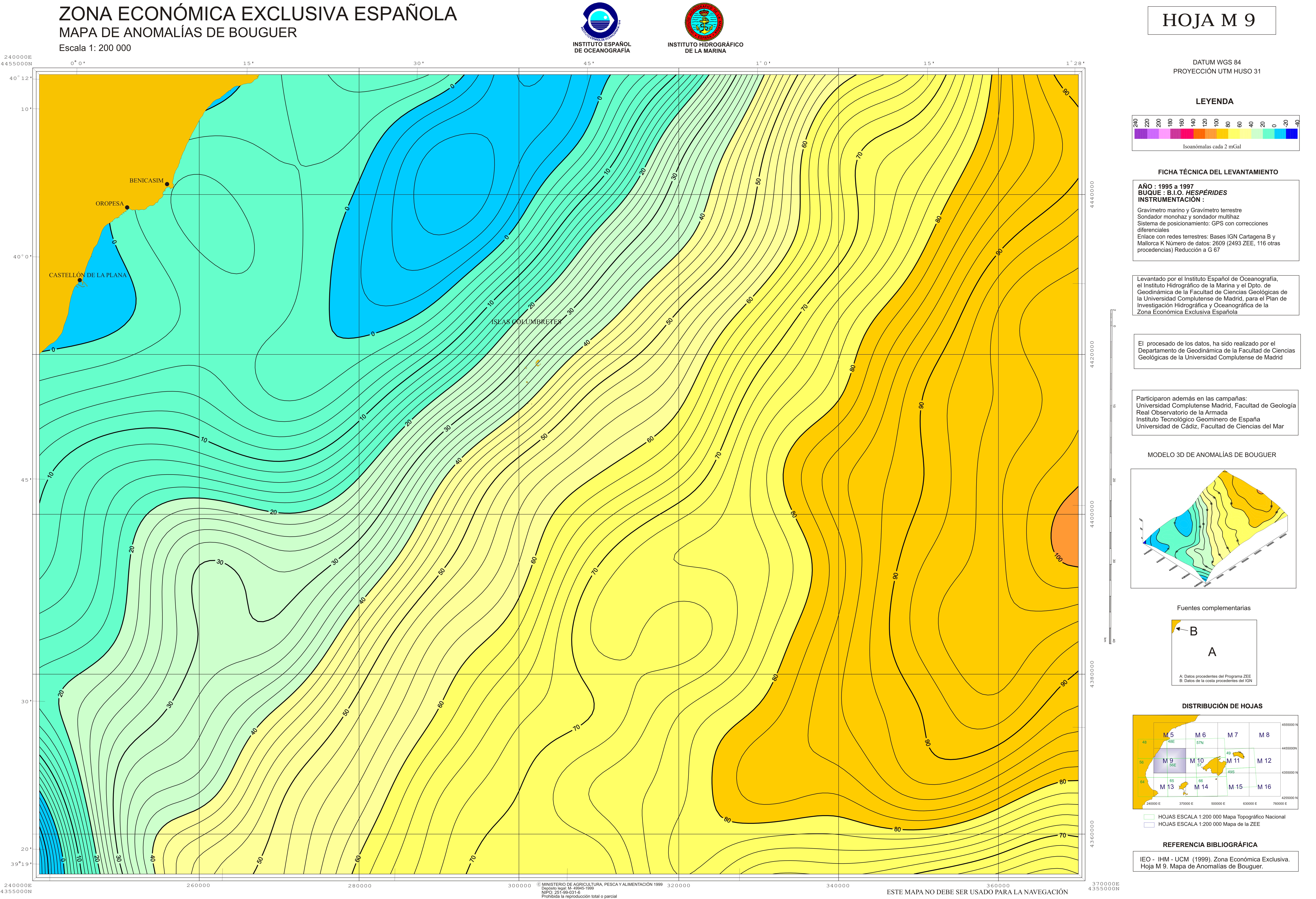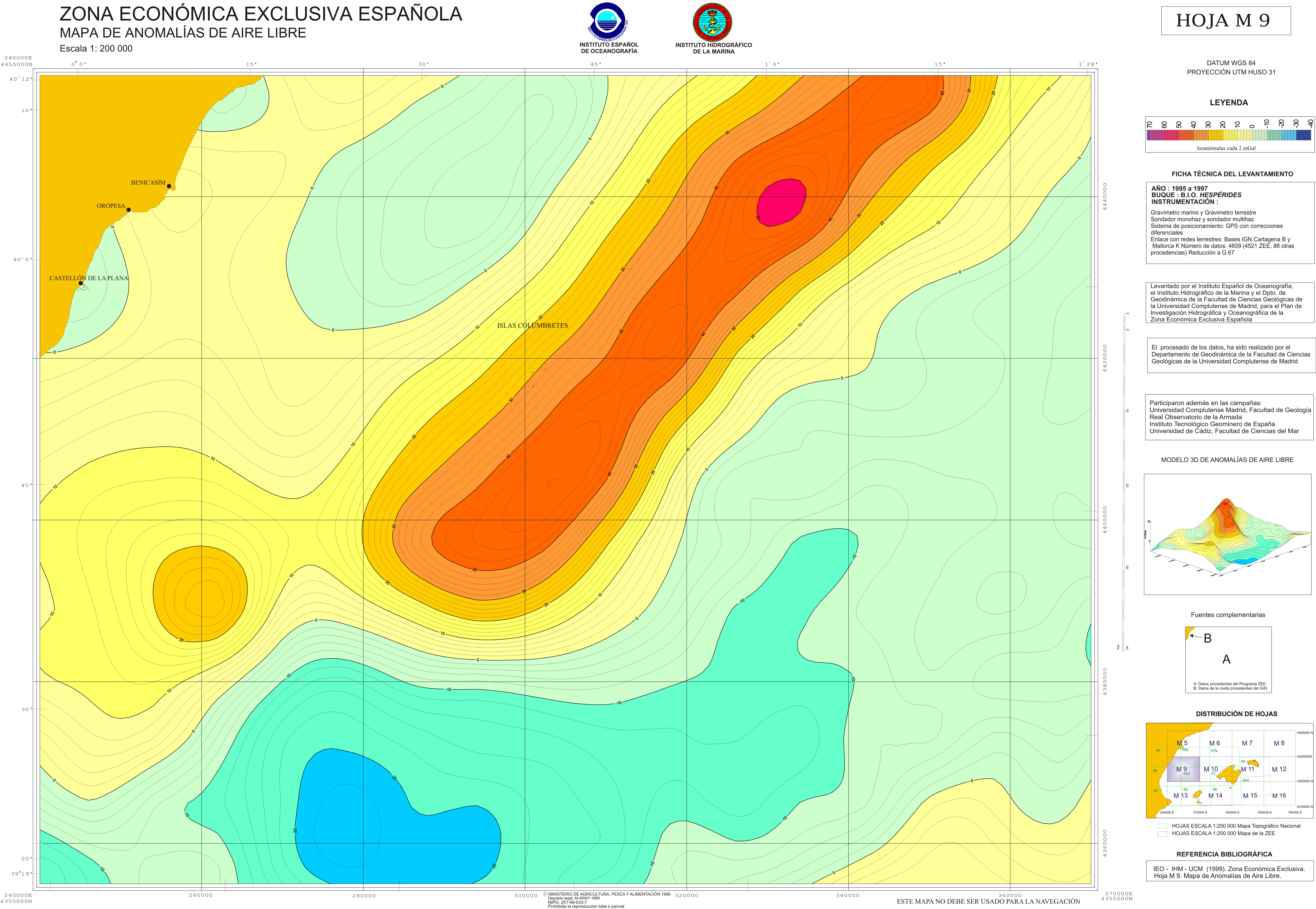 Mapas geofísicos. 1999.Hoja-M 9 : mapa de anomalías de aire libre