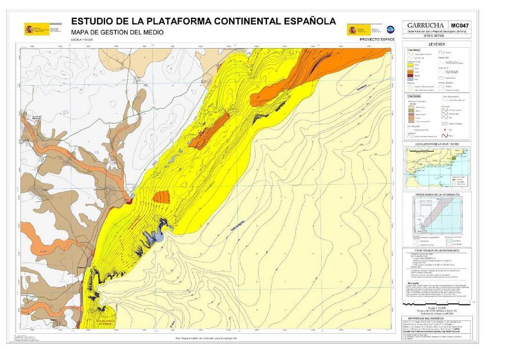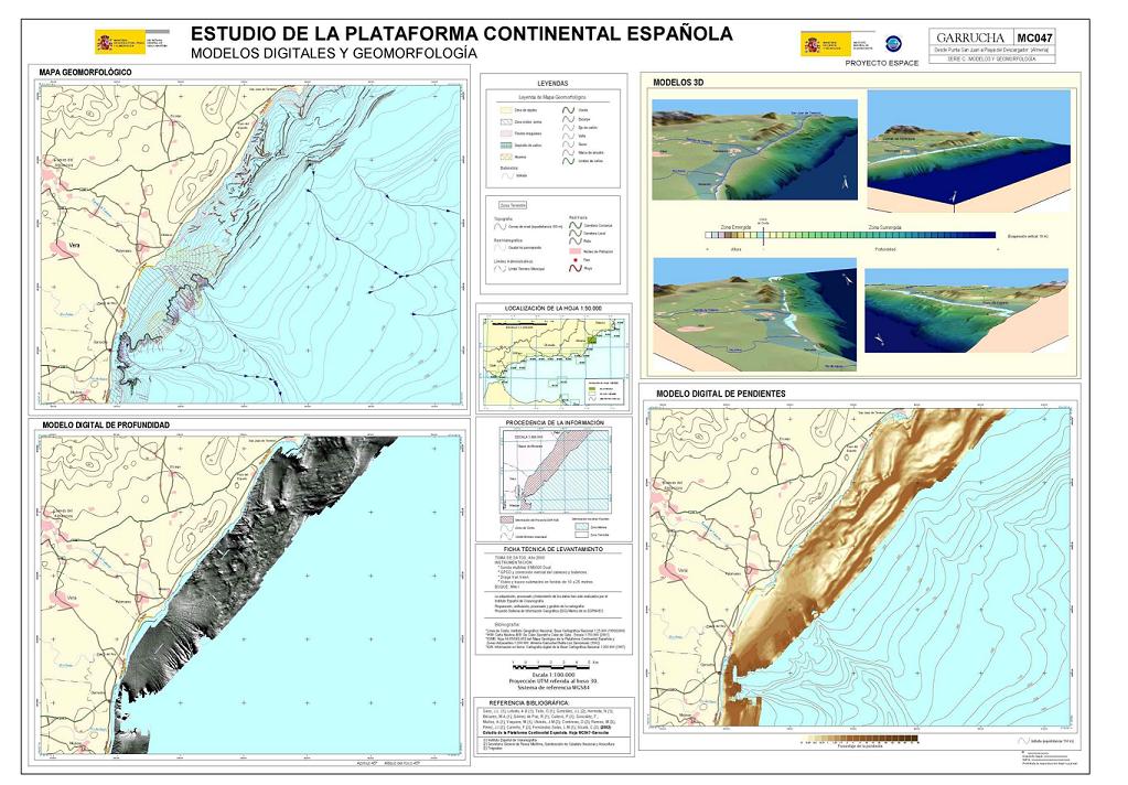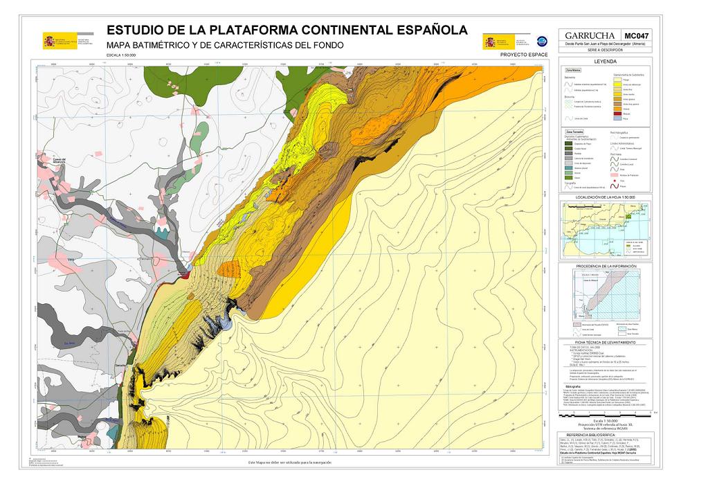 Sanz, J.L., Hermida, N., Lobato, A.B., Tello, O., Fernández-Salas, L.M., González-Serrano, J.L., Bécares, M.A., Gómez de Paz, R., Cubero, P., González, F., Muñoz, A., Vaquero, M., Ubiedo, L.M., Contreras, D., Ramos, M., Perez, J.I., Carreño, F. y Alcalá C. 2002. Hoja MC047. GARRUCHA: Desde Punta San Juan a Playa del Descargador (Almería). Serie C: Modelos y Geomorfología. Serie cartográfica Estudio de la Plataforma continental Española. IEO-SGPM. Madrid.ISBN:84-95877-08-2. Obra completa ISBN: 84-95877-04-X.