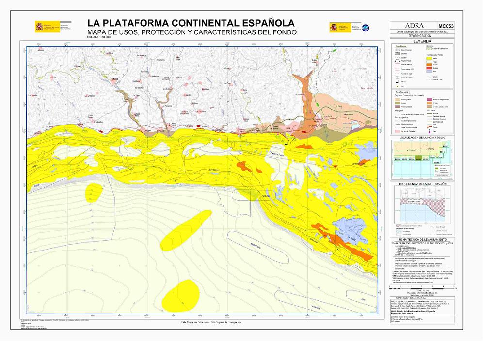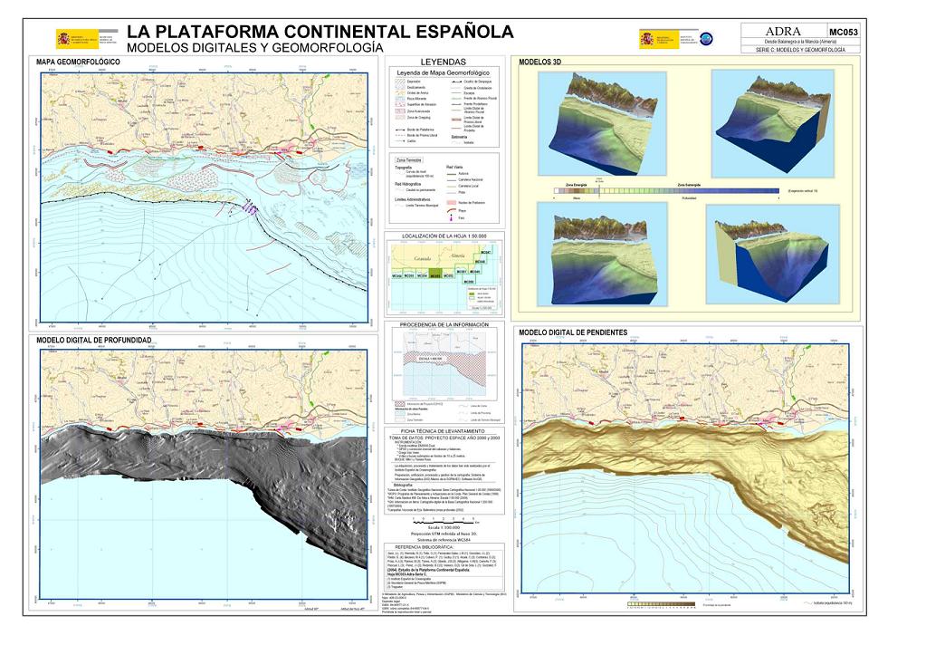 Sanz, J.L.; Hermida, N.; Tello, O.; Fernández-Salas, L.M.; González, J.L.; Pastor, E.; Bécares, M.A.; Cubero, P.; Godoy, D.; Alcalá, C.; Contreras, D.; Frias, A.J.; Torres, A.; Alfageme, V.M; Carreño, F.; Pascual, L; Pérez, J.I.;Redondo, B.C; Velasco, D; González, F.. 2004. Hoja MC053 ADRA: Desde Balanegra La Mamola (Almería y Granada). Serie C: Modelos y Geomorfología. Serie cartográfica Estudio de la Plataforma continental Española.ISBN: 84-95877-28-7. ISBN (Obra completa): 84-95877-04-X.